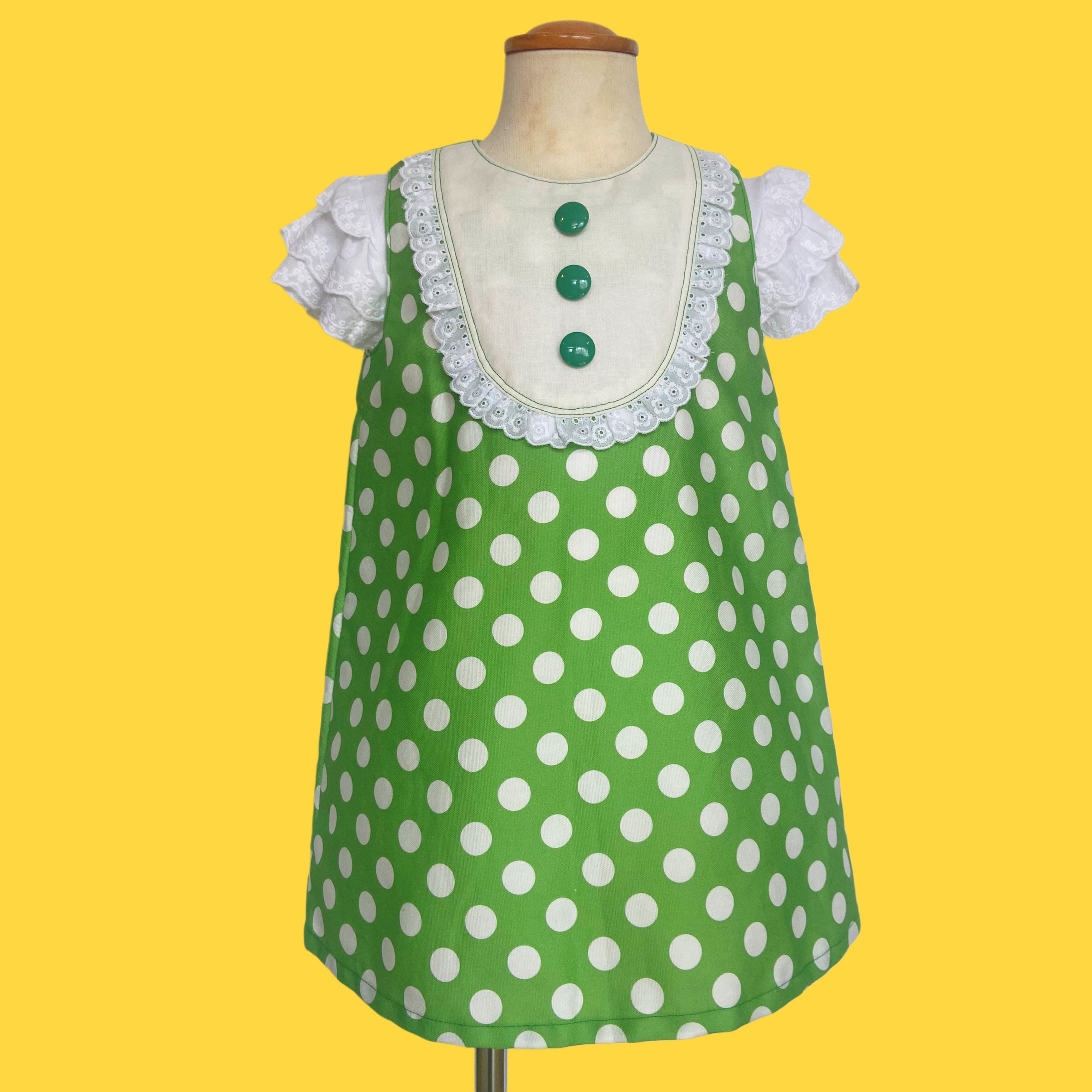 【kids】100サイズ レトロドットワンピース グリーン