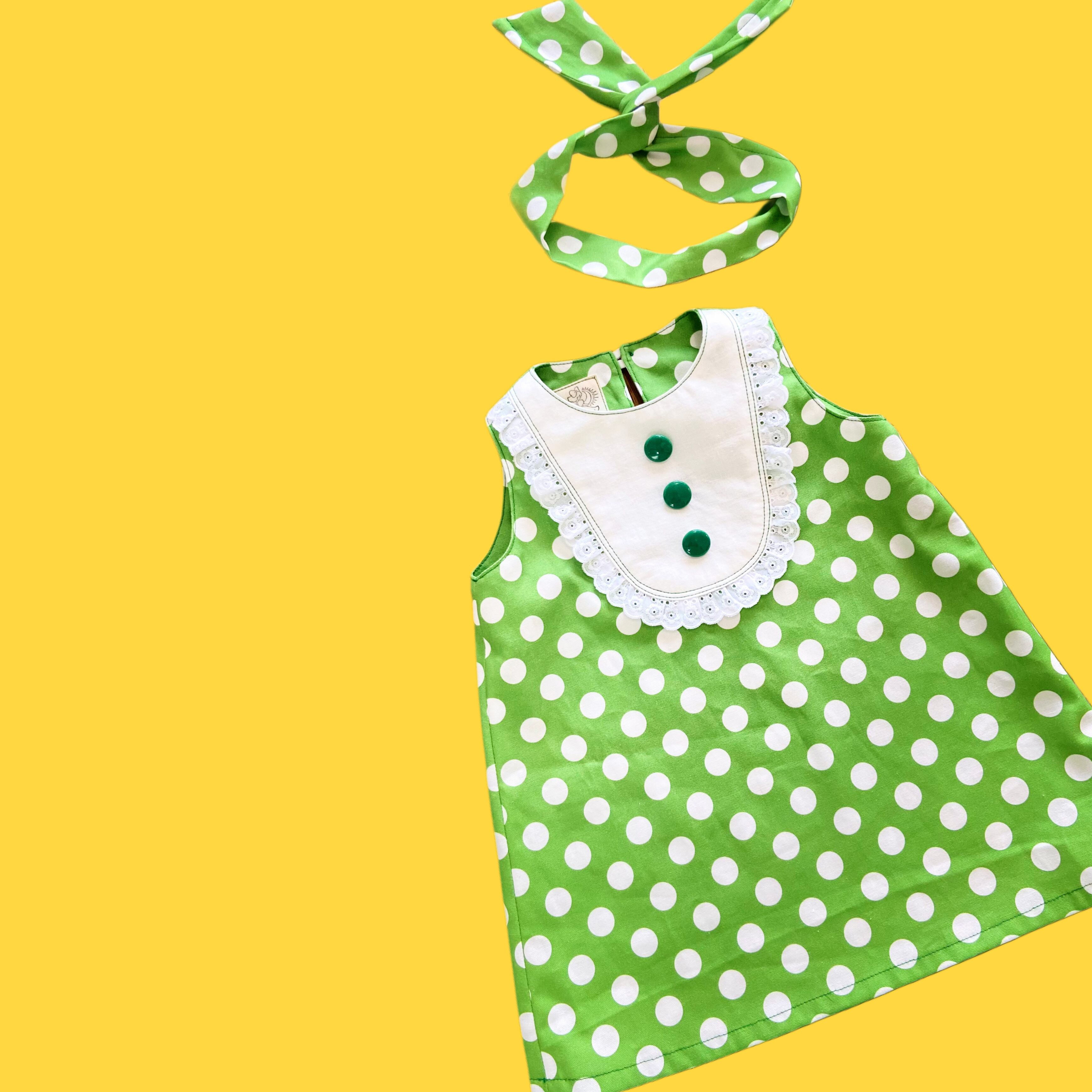 【kids】110サイズ レトロドットワンピース グリーン