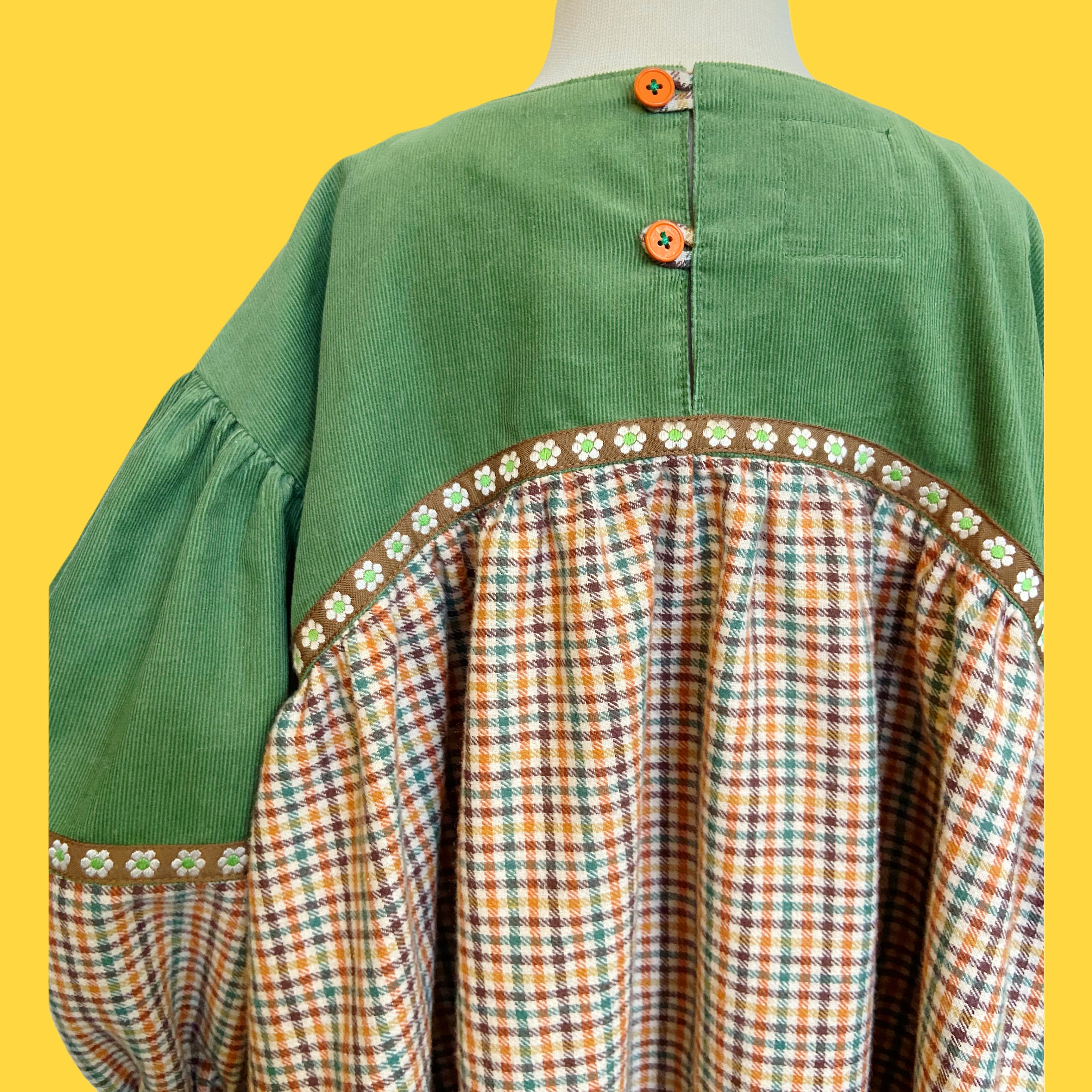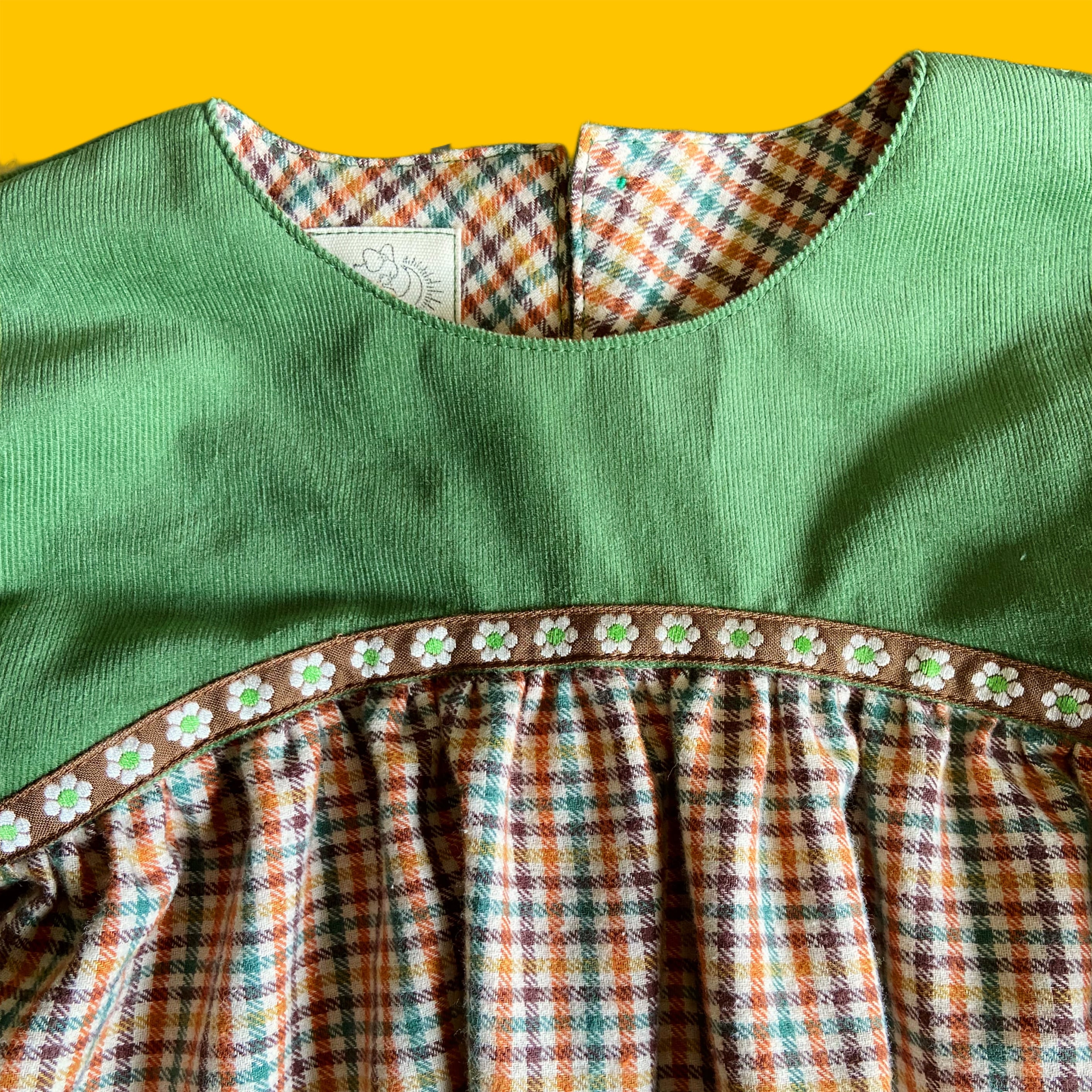 【kids】100-110サイズ レトロフラワーガンクラブチェックワンピース