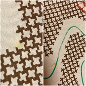 何十年も前の生地を使用しているので、シミや印刷のカスレなどがあります