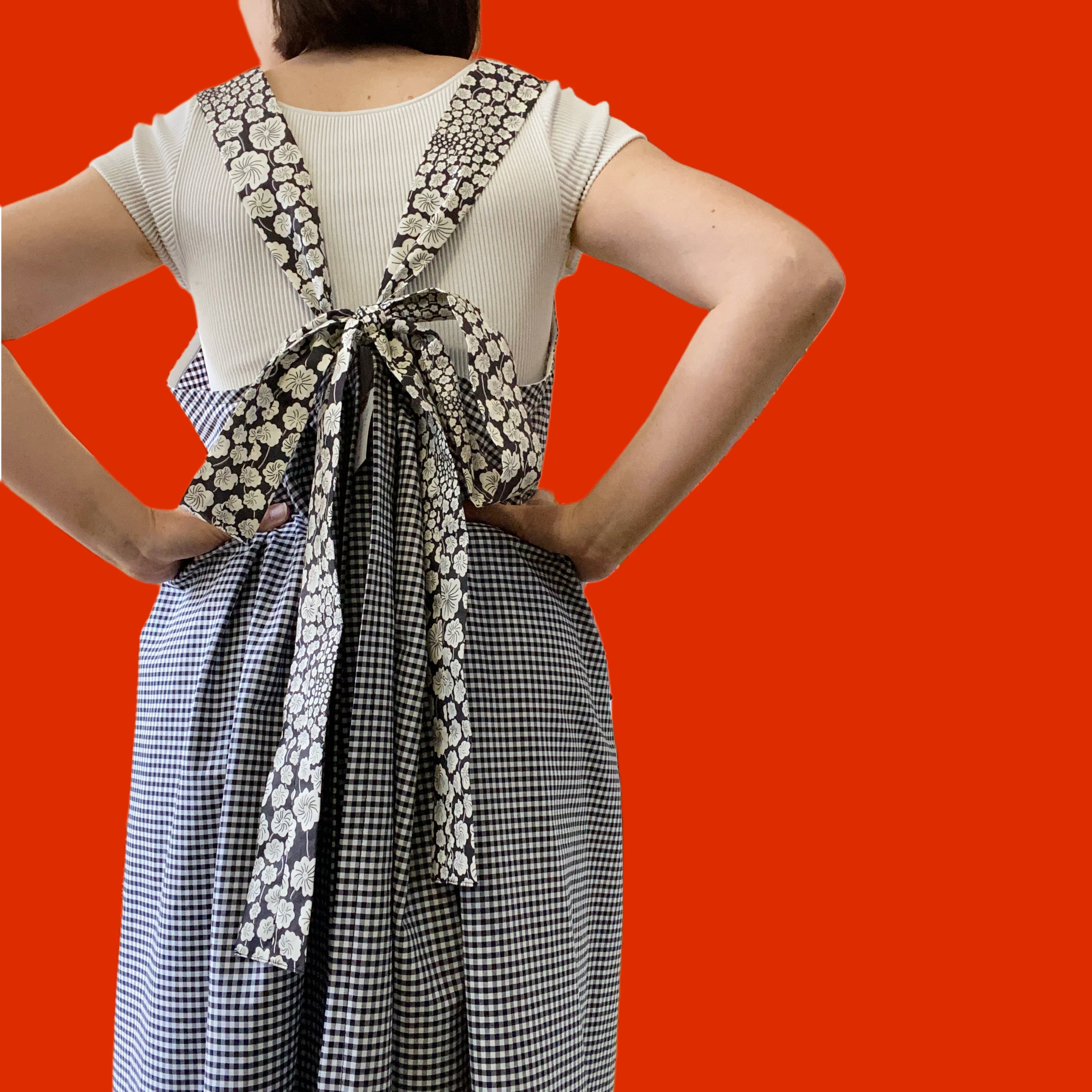 綿毛みたいな柄のリバティプリントとギンガムチェック使用。