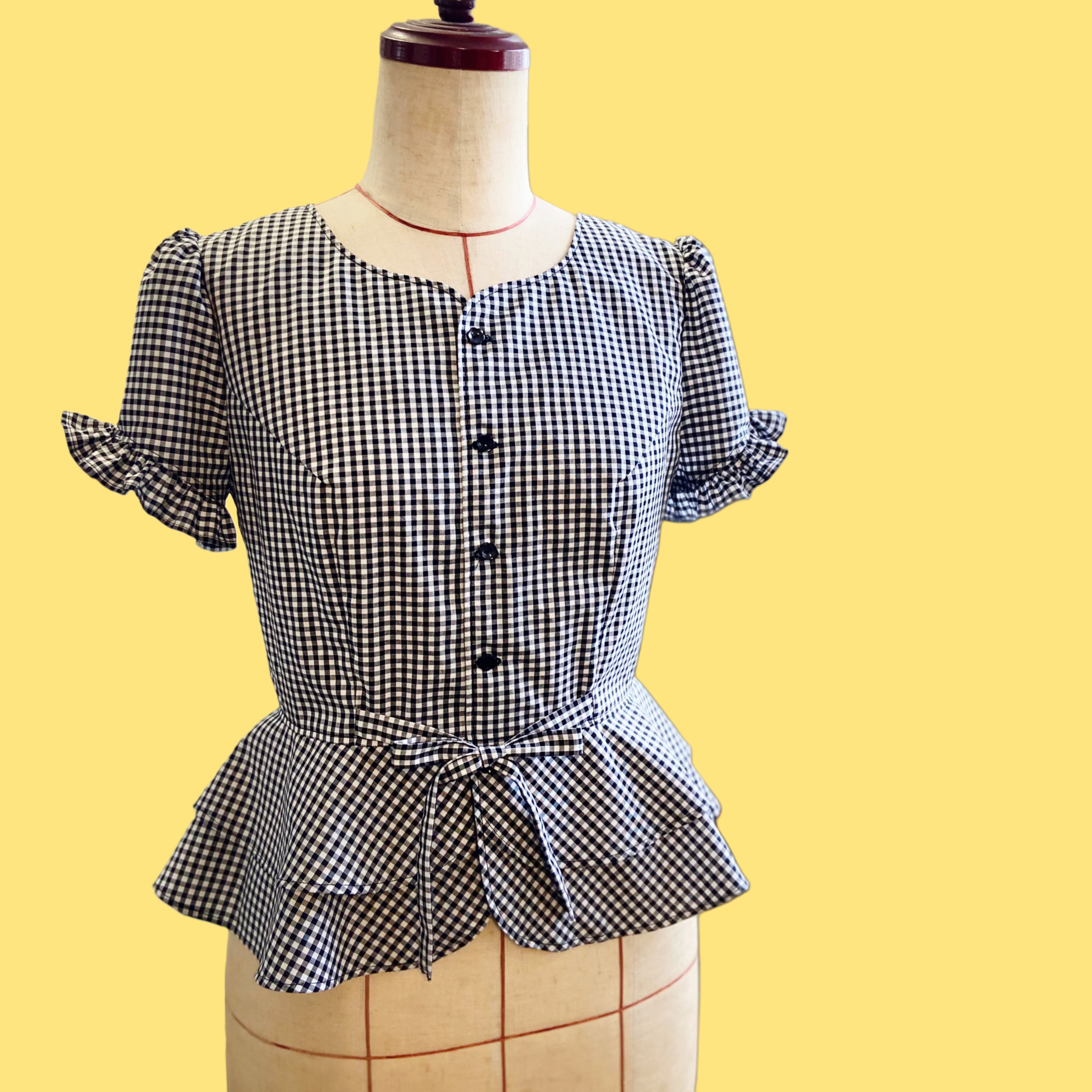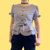 ギンガムチェックぺプラムブラウスM